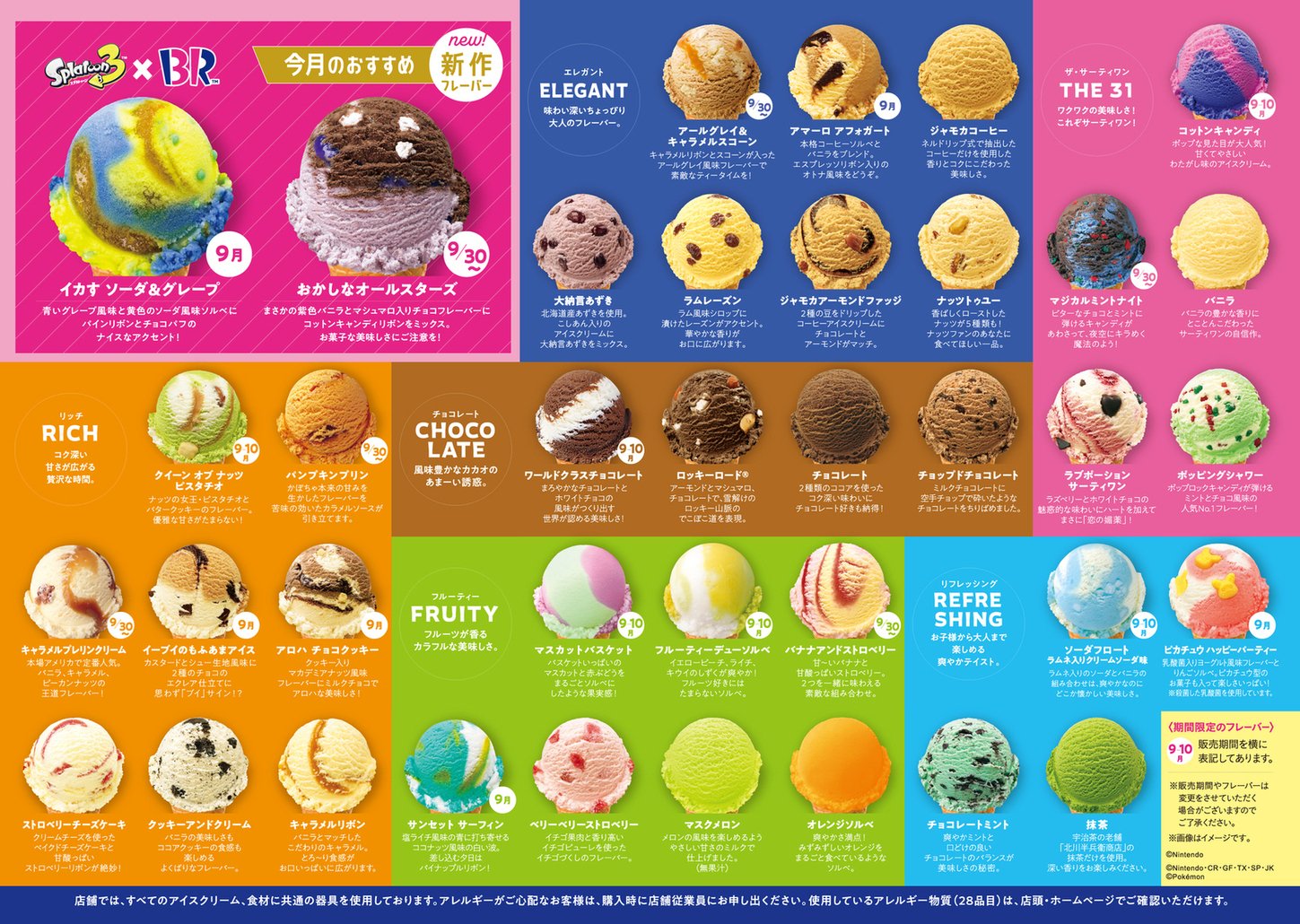 サーティワン アイスクリーム 9月 10月フレーバージャーナル公開 9 1 ソーダ風味とグレープ風味ソルベに パインリボンとチョコパフ イカす ソーダ グレープ 9 30 紫色バニラとマシュマロ入り チョコフレーバーに コットンキャンディリボン